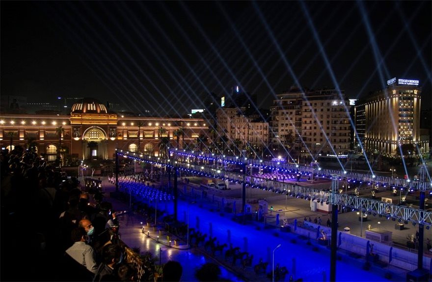 Είκοσι δύο άρματα, που μετέφεραν τις μούμιες βασιλιάδων και βασιλισσών της αρχαίας Αιγύπτου, παρέλασαν χθες το βράδυ στους δρόμους του Καΐρου, σε ένα φαραωνικό θέαμα, για να πάνε στο καινούριο «σπίτι» τους, το Εθνικό Μουσείο Αιγυπτιακού Πολιτισμού (NMEC).