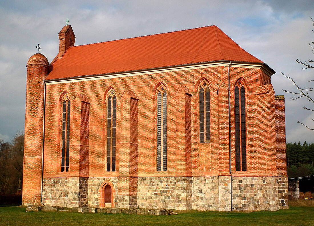 Η απομονωμένη εκκλησία του 1232, κατασκευασμένη με κόκκινο τούβλο πάνω σε μια βάση από γρανίτη, είναι φτιαγμένη μάλιστα με το τυπικό των Ναϊτών, τον περίπλοκο κώδικα του τάγματος που φυλούσαν σαν τα μάτια τους οι ιππότες.
