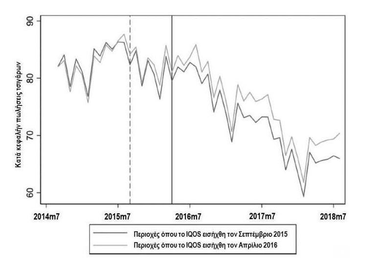 Από εκεί και πέρα, η είσοδος του IQOS σχετίζεται με τη χρονική στιγμή της πτώσης των πωλήσεων για τα συμβατικά τσιγάρα. Αξίζει όσον αφορά αυτό να αναφερθεί πως το ισχύει για οποιοδήποτε άλλο γεγονός. Ακόμη και για το θέμα που έχει να κάνει με κάποια κυβερνητική παρέμβαση σχετικά με το θέμα του καπνίσματος.