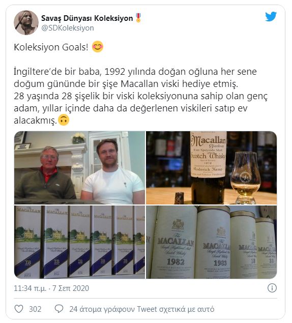 Ο Pete, που είναι Σκωτσέζος -και έτσι εξηγούνται πολλά- είπε ότι το πρώτο μπουκάλι ουίσκι χρονολογίας 1974 αγοράστηκε για να «βρέξει το κεφάλι του μωρού». «Νόμιζα ότι θα ήταν ενδιαφέρον αν αγόραζα ένα κάθε χρόνο και θα κατέληγε με 18 μπουκάλια ουίσκι 18 ετών για τα 18α γενέθλιά του», δήλωσε. Όπως εξήγησε, πάντως, αυτό «δεν ήταν το μόνο δώρο που λάμβανε από την οικογένειά του. Προορίζονταν να είναι ένα μοναδικό δώρο και ήταν λίγο τύχη που το συνεχίσαμε». Ήδη το ενδιαφέρον για τα 28 συλλεκτικά Macallan είναι τεράστιο.