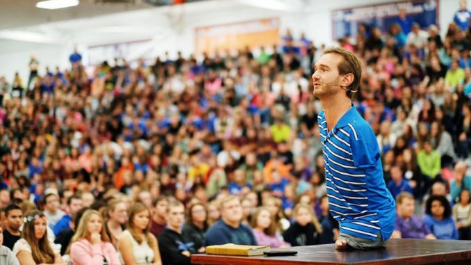 «Τι είναι λοιπόν, τι είναι αυτό που ψάχνουμε στη ζωή; Εγώ ήθελα χέρια και πόδια, έλεγα στον εαυτό μου πως αν τα είχα, όλα θα ήταν εντάξει. Όταν ξεκίνησα την καριέρα μου ως ομιλητής, ξέρετε ότι είχα τηλεφωνήσει σε 52 σχολεία στο Κουίνσλαντ; Γεια σας είμαι ο Νικ Βουιζίτζ και είμαι ομιλητής, μπορώ να έρθω να μιλήσω στο σχολείο σας;».