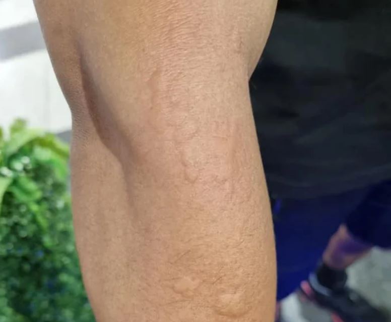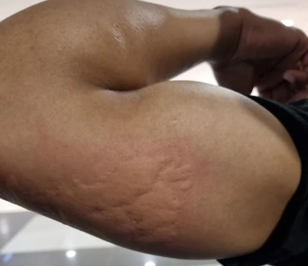 Ο Dane Omar μας προειδοποιεί να αποφύγουμε τις δημόσιες καρέκλες μασάζ. Οι φωτογραφίες του χεριού και των μπράτσων δείχνουν πολλά πρησμένα εξογκώματα που προκλήθηκαν από τα έντομα τον είχαν δαγκώσει.
