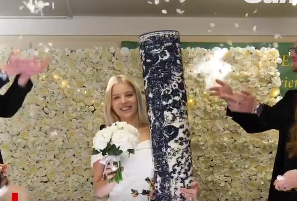 Η ανύπαντρη μητέρα, η Μπέκι Κοκς, φόρεσε το νυφικό της και αποφάσισε να ενωθεί με τα ιερά δεσμά του γάμου με το χαλί της.