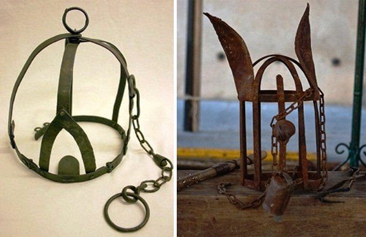 Φορούσαν στην άτυχη ή στον άτυχο ένα χαλινάρι γλώσσας. Μια σιδερένια κατασκευή που έπιανε το κεφάλι και πίεζε τη γλώσσα προς τα κάτω με ένα μαχαίρι.