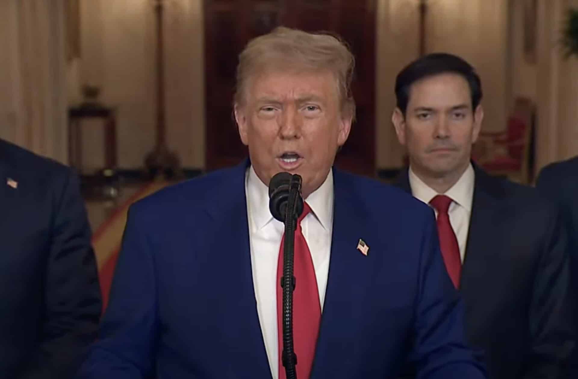 Τον πλαισίωναν ο αντιπρόεδρος Τζέι Ντι Βανς, ο υπουργός Εξωτερικών Μάρκο Ρούμπιο και ο υπουργός Άμυνας Πιτ Χέγκσεθ.