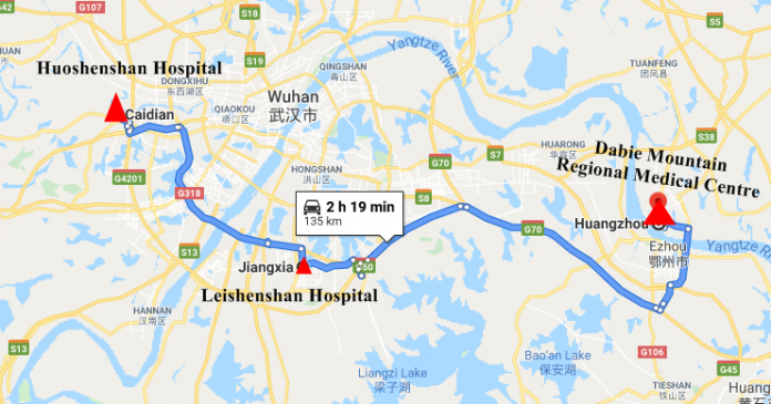 Το νοσοκομείο χτίζεται στην περιοχή Caidan και ειδικότερα στην πόλη Wuhan, απ’ όπου πρωτοεμφανίστηκε ο κορωναϊός ενώ η εγκατάσταση βρίσκεται κοντά στη λίμνη Τζίνν. Η εικόνα του άρθρου που δήθεν δείχνει την πρόοδο της κατασκευής του κτηρίου ουδεμία σχέση έχει με τη πραγματικότητα.