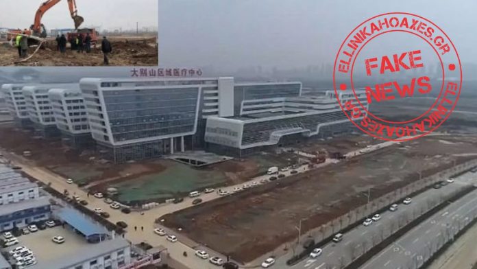 Πρόσφατα δημοσιεύσαμε στη σελίδα μας ένα άρθρο με τίτλο “Νοσοκομείο-εξπρές: Μόλις 5 μέρες χρειάστηκαν οι Κινέζοι για να ετοιμάσουν το νοσοκομείο για το κοροναϊό” το οποίο ανέφερε ότι μέσα σε πέντε ημέρες χτίστηκε το πρώτο κτήριο του νοσοκομείου Χουοσινσεν (Huoshenshan) της πόλης Wuhan.