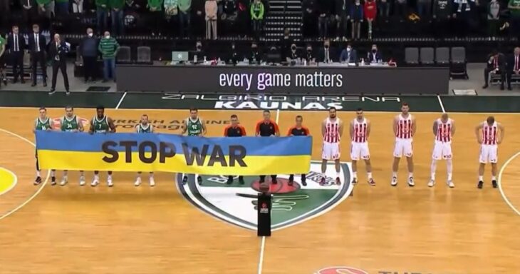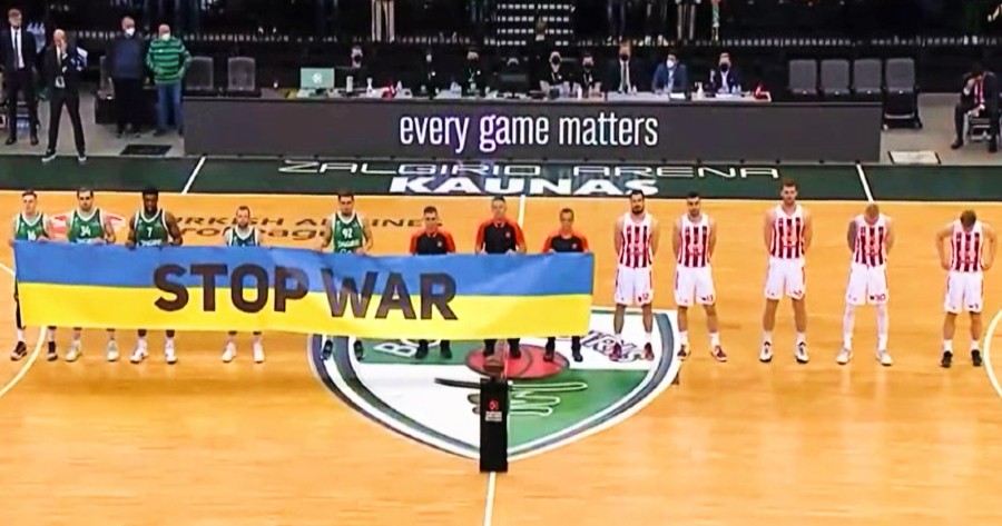 Σε εξ αναβολής αγώνα για τη Euroleague, ο Ερυθρός Αστέρας αντιμετώπισε τη Ζαλγκίρις Κάουνας, με τους Λιθουανούς να δείχνουν για μία ακόμη φορά τη στήριξή του στην Ουκρανία, για τον πόλεμο με τη Ρωσία.
