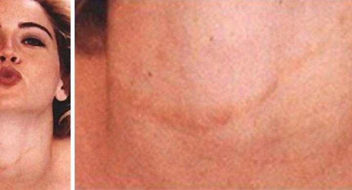 – Σάρον Στόουν: Η 62χρονη ηθοποιός έχει σημάδι στη βάση του λαιμού της το οποίο φροντίζει να καλύπτει επιμελώς με μέικ απ και πούδρα. Οι «κακές γλώσσες» λένε ότι είναι σημάδι από λίφτινγκ που έκανε ωστόσο η αλήθεια είναι άλλη. Η Στόουν απέκτησε το σημάδι στα παιδικά της χρόνια κατά τη διάρκεια ιππασίας. Καθώς έτρεχε με το άλογο χτύπησε πάνω σε ένα τεντωμένο σχοινί.