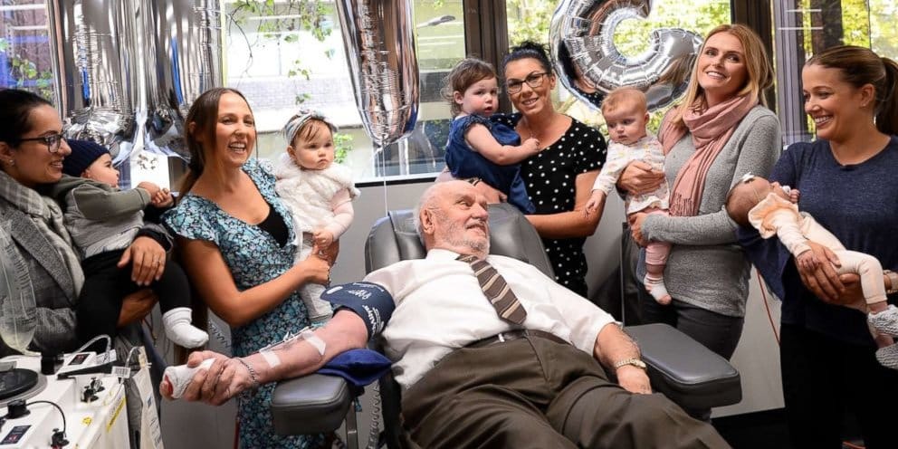 Σε ηλικία 88 ετών πέθανε ένας Αυστραλός που πιστώνεται ότι έσωσε περισσότερα από 2 εκατομμύρια μωρά μέσω δεκαετιών τακτικών δωρεών αίματος και πλάσματος.