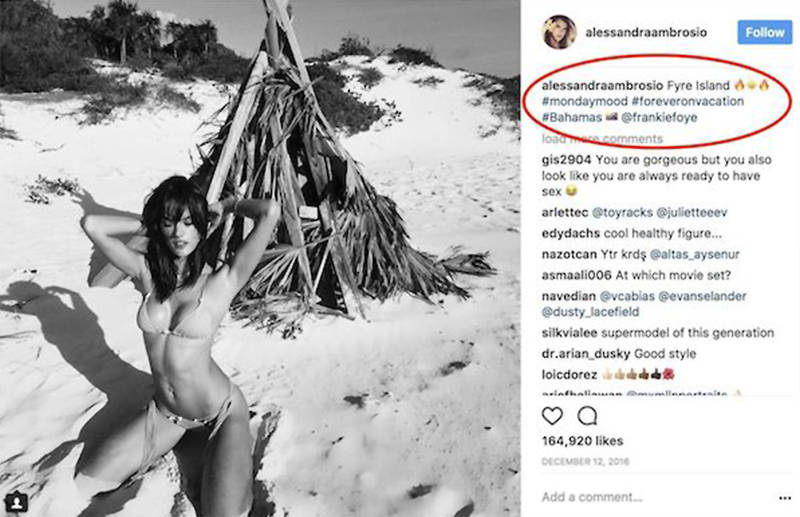 To «Fyre Festival» διαφημίστηκε με επιθετικούς όρους ως το απόλυτο luxury μουσικό event που θα ισοπέδωνε το Coachella. Η διοργάνωση πλήρωσε πολύ καλά δεκάδες ανθρώπους οι οποίοι θα προωθούσαν το φεστιβάλ: Ανάμεσα σε αυτούς τα πιο περιζήτητα μοντέλα της εποχής μας όπως η Μπέλα Χαντίντ, η Έμιλι Ρατακόφσκι και η Κέιτ Μος και ένα μάτσο influencers.