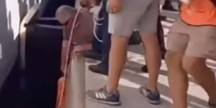 Όπως αναφέρει η Daily Mail, η μητέρα, εμφανώς πανικόβλητη, φωνάζει “πού είναι το παιδί μου;” την ώρα που διαπιστώνει πως το 8χρονο παιδί της έχει πέσει στο κενό ανάμεσα στο κρουαζιερόπλοιο και την αποβάθρα.