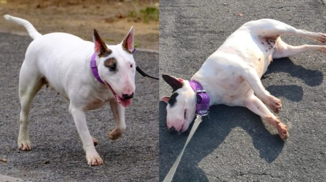 Συγκεκριμένα, ένα Bull Terrier στην Αγγλία κάθε φορά που γυρίζει από βόλτα παριστάνει τον παράλυτο. Αυτό, διότι «κολλάει» στο πεζοδρόμιο για να μην γυρίσει στο σπίτι.