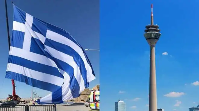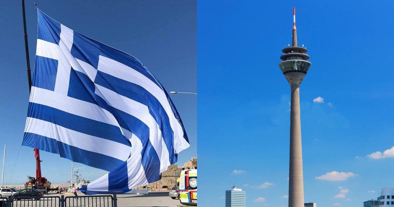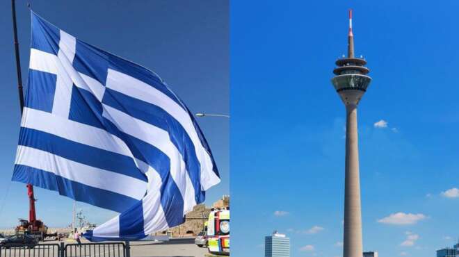 Γαλανόλευκη Γερμανία: Με τα Ελληνικά χρώματα θα ντυθεί και ο Πύργος του Ρήνου στο Ντέσσελντορφ για την 25η Μαρτίου. Πρόκειται για ένα από τα πιο εμβληματικά κτίρια της Γερμανικής πόλης.