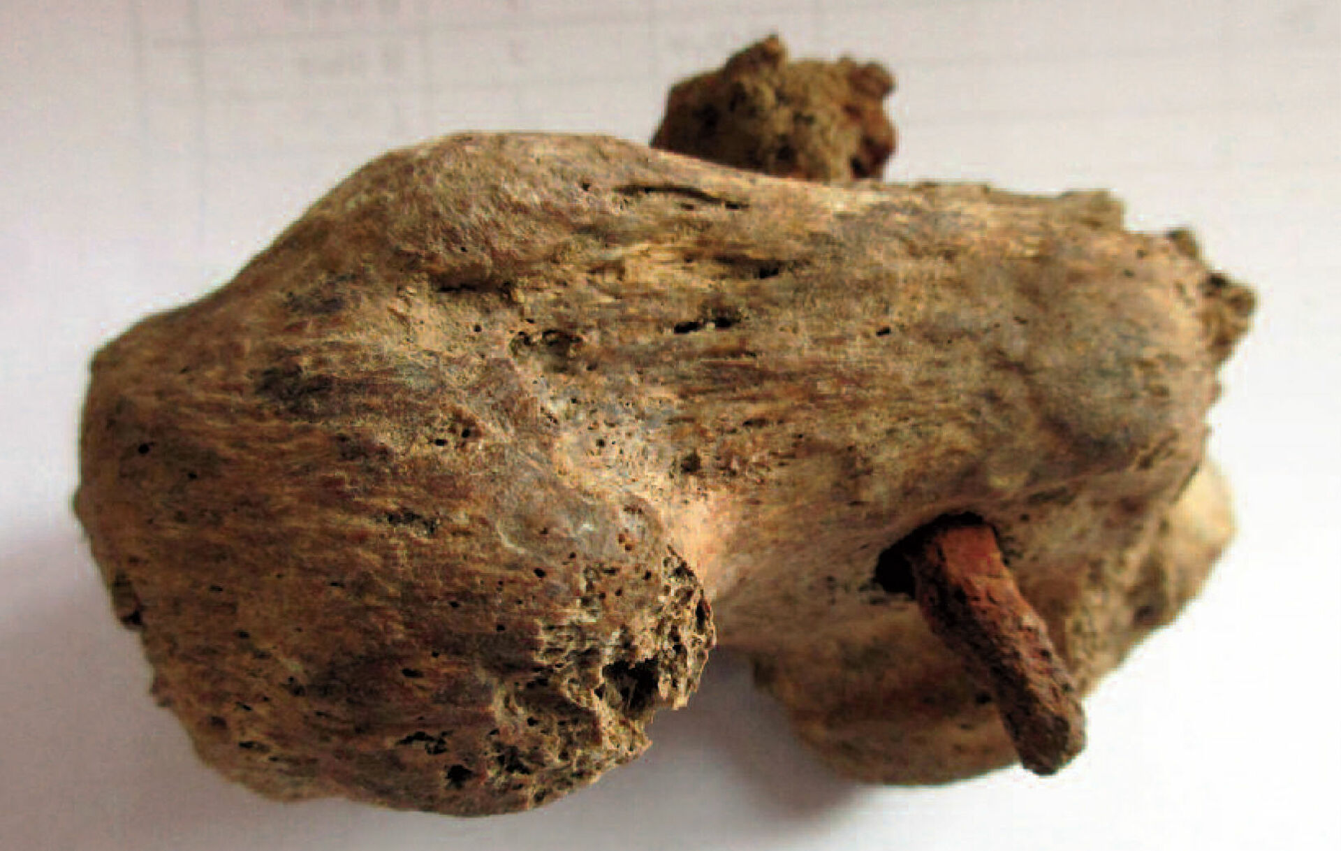 Αλλά όταν η συγκεκριμένη ομάδα εστίασε πιο προσεκτικά στα ευρήματα ανακάλυψε έναν σκελετό που χρονολογείται πριν από περίπου 1.900 χρόνια. Ο ανδρικός σκελετός που ανακαλύφθηκε άνηκε σε έναν άντρα ο οποίος είχε ένα μεγάλο σιδερένιο καρφί ενσωματωμένο στο οστό του αστραγάλου του.