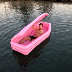 Ένας σχεδιαστής από τον Καναδά αποφάσισε να πάει τα στρώματα θαλάσσης ένα βήμα πιο μπροστά και έτσι λοιπόν κατασκεύασε ενα σε σχήμα φέρετρου με κανονικό καπάκι που κλείνει και το δημοσίευσε στον προσωπικό του λογαριασμό στο Instagram προς εύρεση χρηματοδότησης.