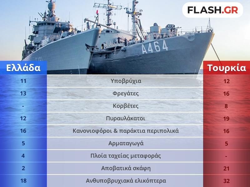 Σύγκριση ένοπλων δυνάμεων: Κι άλλες πληροφορίες για το Πολεμικό Ναυτικό