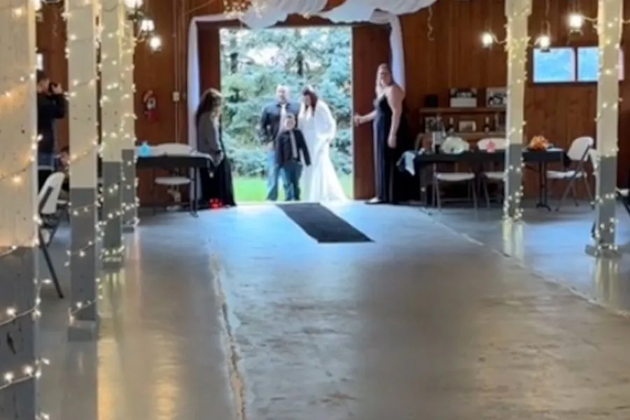 Όπως υπογράμμισε η νύφη στα πλάνα από τη γαμήλια τελετή «POV: Σχεδίασες την πιο όμορφη είσοδο. Απλώς για να ανοίξω τις πόρτες σε έναν άδειο χώρο».