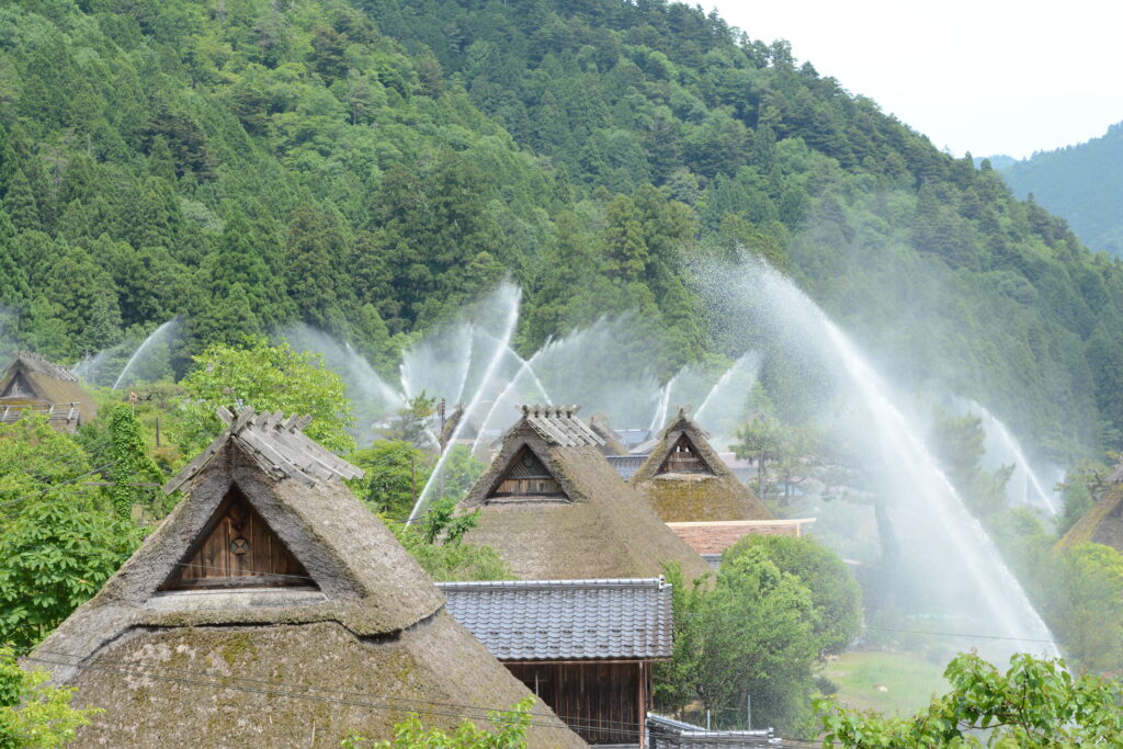 Τα συγκεκριμένα σπίτια έχουν αχυροσκεπές, που σημαίνει ότι είναι πολύ ευάλωτα σε πυρκαγιές, οι οποίες μπορούν να εξαπλωθούν αρκετά γρήγορα και να κάψουν όλο το χωριό. Το 2000 υπήρξε μια τέτοια φωτιά, η οποία έκαψε ένα κέντρο αρχειοθέτησης και τρόμαξε τους κατοίκους. Έτσι, αποφάσισαν να εγκαταστήσουν αυτό το σύστημα πυρόσβεσης.