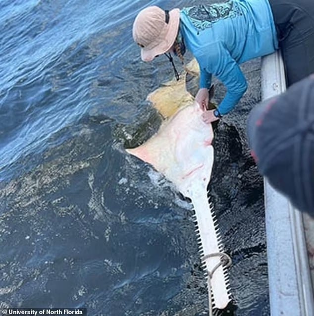 Ο Gelsleichter και τέσσερις σπουδαστές βρίσκονταν στον ποταμό St Mary’s River, τον Ιούλιο, όταν ένιωσαν ένα τράνταγμα στα ειδικά αγκίστρια που είχαν βάλει και έμειναν έκπληκτοι από τον καρχαρία τριών μέτρων, ο οποίος θεωρούνταν εξαφανισμένος.