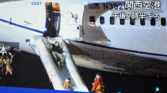 Η προσγείωση έγινε γύρω στις 7 μ.μ. τοπική ώρα (1 μ.μ. ώρα Ελλάδος). Σύμφωνα με το NHK, που επικαλείται πηγές από το αεροδρόμιο και το ιαπωνικό υπουργείο Μεταφορών, οι επιβάτες εγκατέλειψαν το αεροπλάνο χρησιμοποιώντας τις τσουλήθρες έκτακτης ανάγκης.