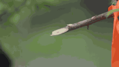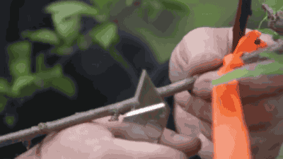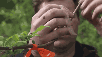 – Μετά το τύλιγε με ταινία ώστε να επουλωθεί η σχισμή και να ενωθούν τα δύο τμήματα και τελικά να αναπτυχθεί ένας κλάδος που θα παράγει ένα διαφορετικό φρούτο.