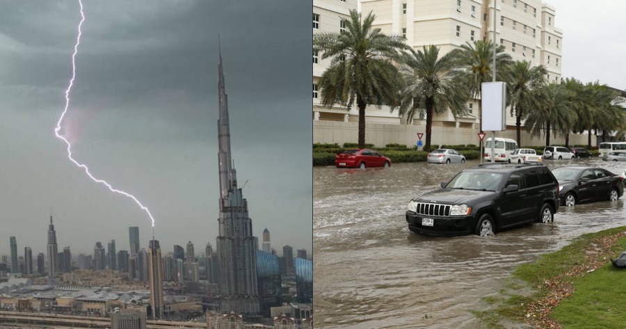 Βίντεο που έδωσε στη δημοσιότητα η Εθνική Μετεωρολογική Υπηρεσία των ΗΑΕ δείχνει βροχοπτώσεις σε όλη τη χώρα και υπογραμμίζει ότι έχουν ενισχυθεί με μια τεχνική γνωστή ως σπορά σύννεφων και σκοπός τους είναι να αυξήσει την συμπύκνωσή τους με την ελπίδα πως μπορεί να προκαλέσει βροχή.