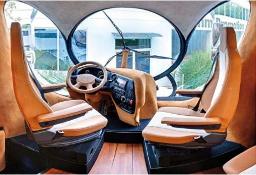 Το τροχόσπιτο της πολυτέλειας διαθέτει θερμαινόμενο πάτωμα. Επίσης, έχει και πολλούς πολυτελείς κοινόχρηστους χώρους. Αξίζει να αναφερθεί και το γεγονός πως έχει τζάκι, κοκτέιλ μπαρ και όλα τα τελευταίας τεχνολογίας γκάτζετ. Όσον αφορά τον «ένοικο», ο οποίος μπορεί να πληρώσει για να το αποκτήσει, θα μπορεί να απολαύσει τη θέα από την πλήρως αφαιρούμενη οροφή του.
