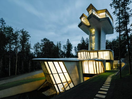 Διαστημικό σπίτι: Πρόκειται για ένα διαφορετικό ακίνητο. Είναι η μοναδική ιδιωτική κατοικία που σχεδιάστηκε από την αρχιτέκτονα, Ζάχα Χαντίντ. Το έκανε για τον Ρώσο δισεκατομμυριούχο και πρώην της Ναόμι Κάμπελ. Βρίσκεται στη μέση ενός δάσους, το οποίο βρίσκεται κοντά στη Μόσχα. Το συγκεκριμένο σπίτι δεν θυμίζει σε τίποτα τα κανονικά σπίτια.
