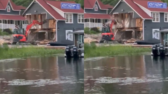 Τα πλάνα φαίνεται να δείχνουν ένα άτομο να χρησιμοποιεί μια μπουλντόζα για να διαλύσει μια από τις παραλίμνιες ιδιοκτησίες στο Κάλγκαρι του Καναδά.