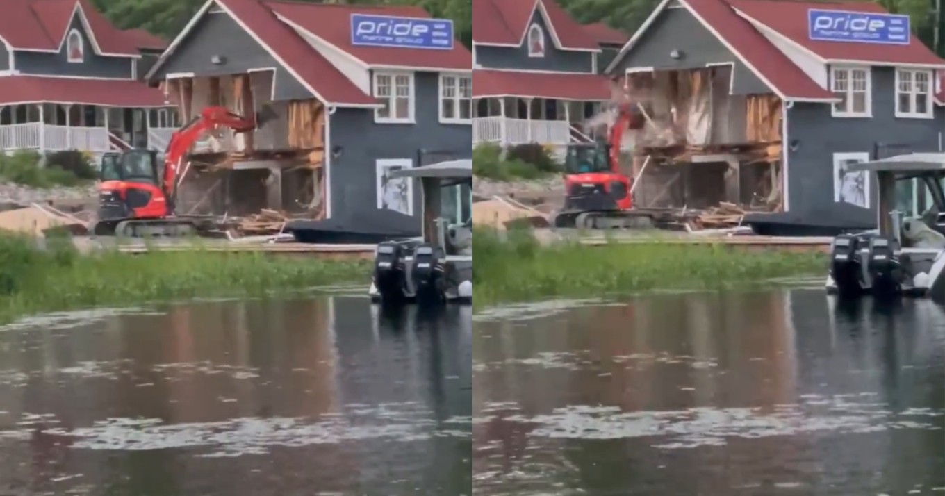Οι σοκαρισμένοι κάτοικοι κατέγραψαν την κατεδάφιση στην κάμερα, καθώς η αστυνομία έσπευσε αργότερα στο περιστατικό, στη μαρίνα Pride of Rosseau Marina, στις λίμνες Muskoka.
