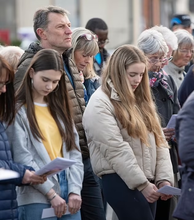 Ο αιδεσιμότατος Ρομπ Γκλάντστοουν, εφημέριος της τοπικής ενοριακής εκκλησίας, ηγήθηκε των προσευχών στην ανεπίσημη υπαίθρια εκδήλωση.