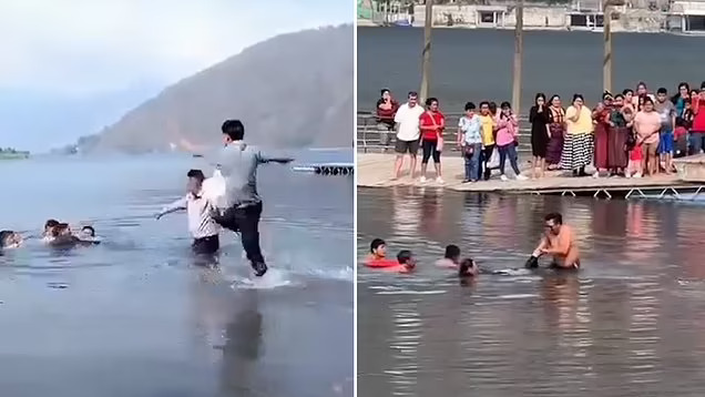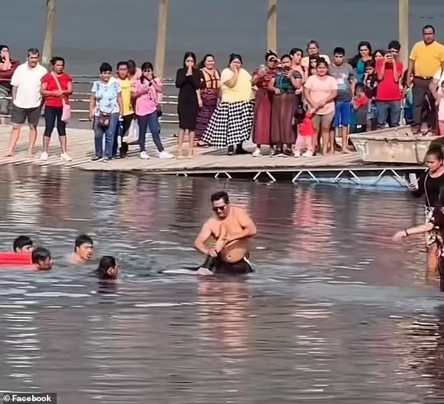 Στο βίντεο από την τελετή που έγινε στη λίμνη Ατιτλάν στη νοτιοδυτική Γουατεμάλα φαίνεται ο Μιγκέλ Σουτ να κρατάει έναν άνδρα που ετοιμαζόταν να βαπτιστεί.