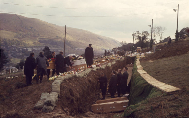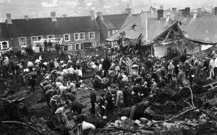Οι πρώτες στιγμές της τραγωδίας, που στιγμάτισε την ιστορία της Βρετανίας, είχαν μόλις γραφτεί. Η μανία της λάσπης παρέσυρε στο θάνατο 144 ανθρώπους -116 παιδιά και 28 ενήλικες, βυθίζοντας στο πένθος ολόκληρες οικογένειες που κλήθηκαν να αναγνωρίσουν τους σορούς των παιδιών τους, τα οποία είχαν μεταφέρθηκαν σε κοντινό παρεκκλήσι και ήταν καλυμμένα με κουβέρτες.