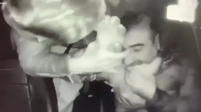 Ξαφνικά, περνά το ένα του χέρι γύρω από τον λαιμό του οδηγού, ενώ με το άλλο στρίβει βίαια το κεφάλι του προς το στόμα του, προσπαθώντας, σύμφωνα με τις αρχές, να του δαγκώσει τη μύτη.