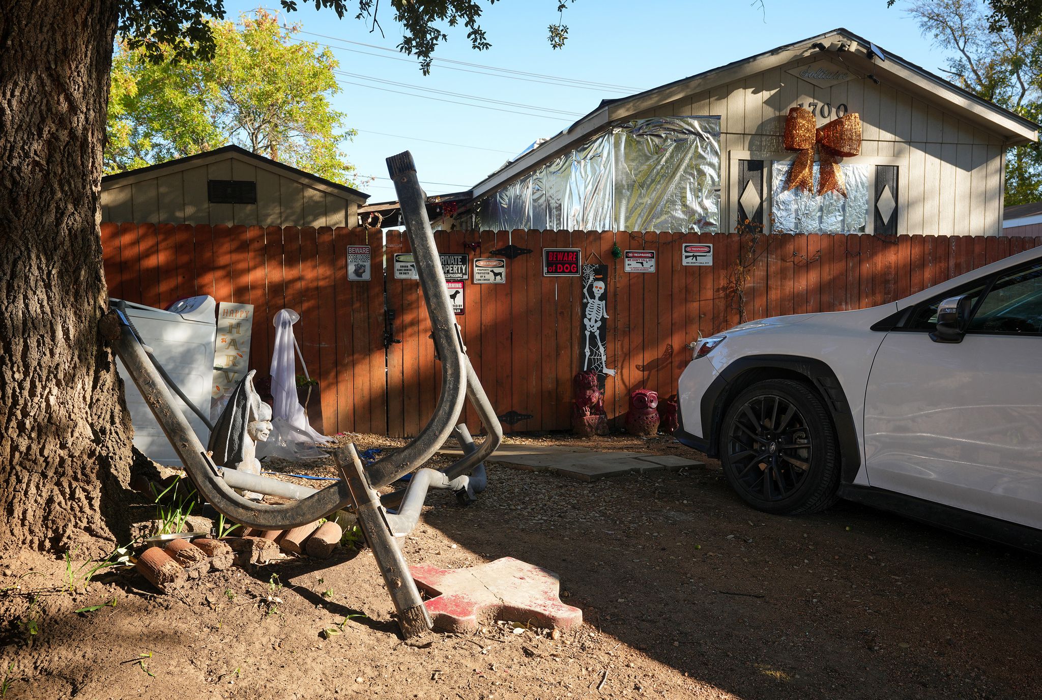 Η αυλή στο πίσω μέρος του σπιτιού που κρατούσαν δεμένη την άτυχη κοπέλα για εβδομάδες