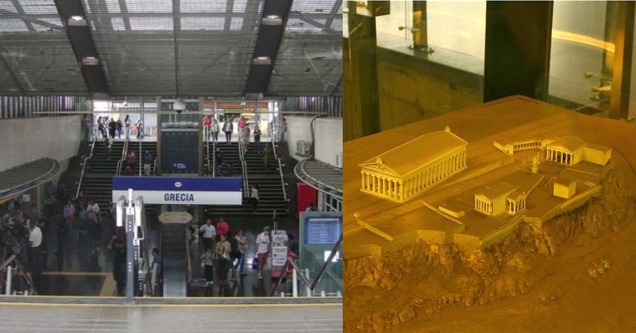 Ο σταθμός μετρό με το όνομα «grecia» δείχνει το ενδιαφέρον που έχει η Χιλή για την Ελλάδα. Είναι αφιερωμένος στην Ελλάδα και ο σταθμός φιλοξενεί από το 2009 την πρώτη του συλλογή από αντίγραφα ελληνικών αρχαιοτήτων. Τα αντίγραφα δωρίστηκαν το υπουργείο Πολιτισμού για την επέτειο των 200 χρόνων ανεξαρτησίας της Χιλής.