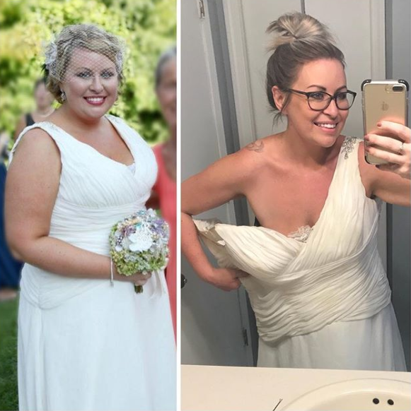 Η Shandra πριν την μεγάλη της αλλαγή, ζύγιζε 117 κιλά. Σήμερα, 75. Η ίδια με επίμονη και υπομονή κατάφερε να κάνει κάτι που πολλοί θα έλεγαν πως ηταν ακατόρθωτο. Πόζαρε πριν από δυο μήνες περιπου με το νυφικό που είχε φορέσει η ίδια στον γάμο της και η διάφορα είναι εμφανέστατη.