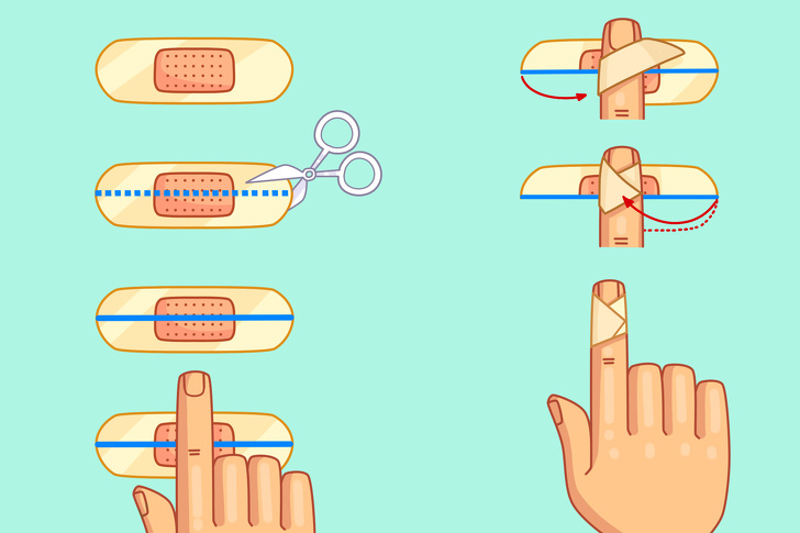 Κόψτε τα 2 κολλητικά άκρα στο μισό και κολλήστε τα στο δάχτυλό σας σε διασταυρωμένο μοτίβο. Τώρα μπορείτε να κάνετε ό, τι θέλετε χωρίς να χρειάζεται να είστε πολύ προσεκτικοί.