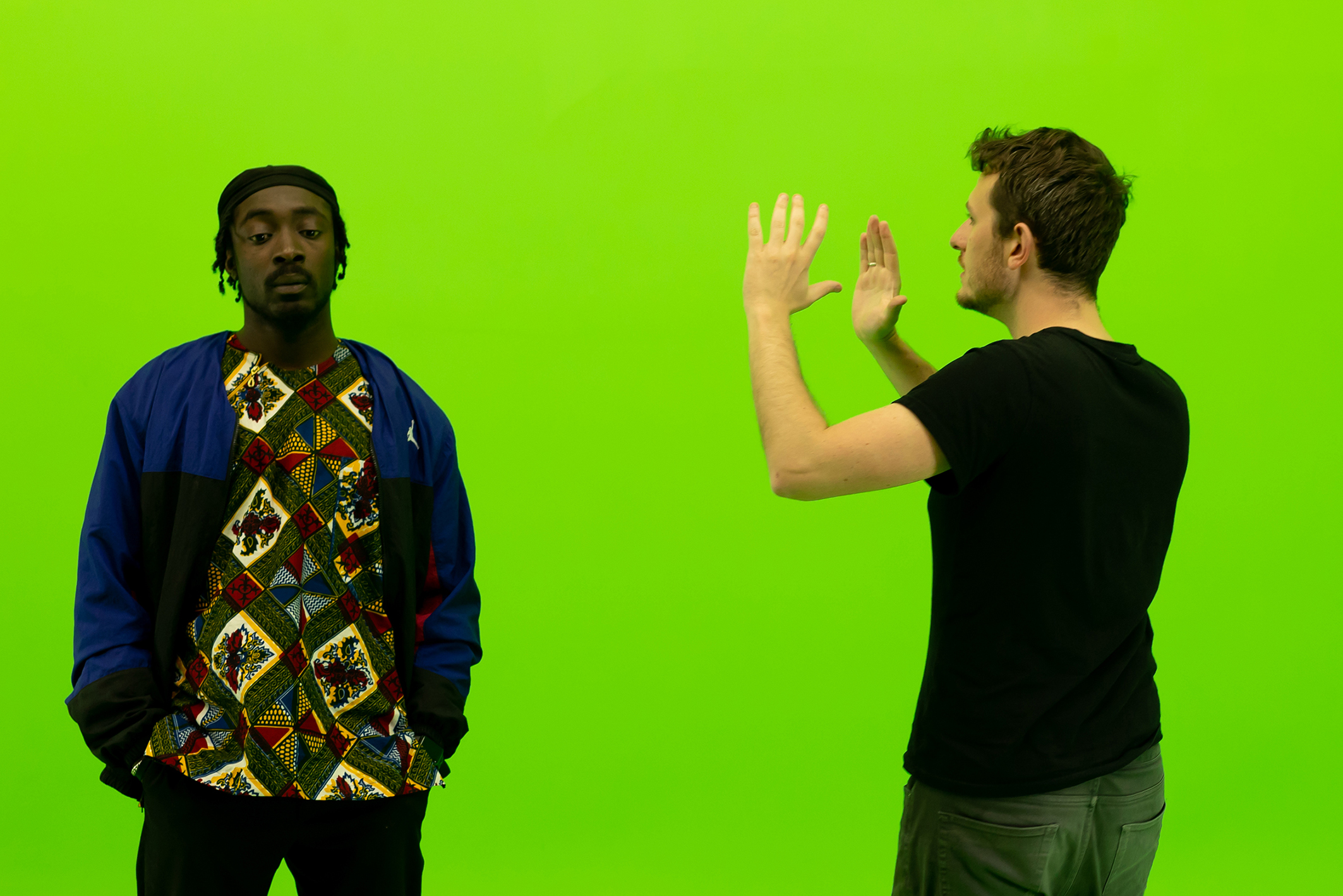 Στην παράσταση αυτή συνδυάζουμε μια θεατρική συνθήκη πραγματικού τόπου – δηλαδή έχει χτιστεί ένας όροφος υπουργείου με γραφεία, στούντιο, καμαρίνια κ.α. επί σκηνής – ενώ παράλληλα χρησιμοποιούμε πολυμέσα, live streaming και τεχνολογία Green Screen ώστε να αναδημιουργήσουμε το σύγχρονο χάσιμο των θεατών μέσα σε οθόνες και εικονικές πραγματικότητες. Αυτή είναι μια πρόκληση.