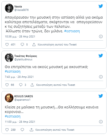 Απαγορεύεται η μουσική στην εστίαση; ναι καλά, ΔΏΣΕ.#χαρδαλιας #εστιαση pic.twitter.com/b80BHHm4ex