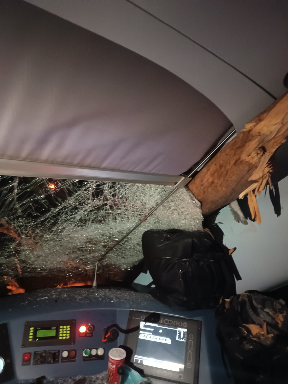 Χαρακτηριστικό είναι ότι σήμερα, λίγες ώρες μετά το χθεσινό συμβάν, αμαξοστοιχία προσέκρουσε σε δέντρα που ήταν πεσμένα στη σιδηροδρομική γραμμή προς Χαλκίδα. Φωτογραφίες δείχνουν τα κλαδιά να έχουν σπάσει το τζάμι και να έχουν μπει στην καμπίνα του μηχανοδηγού.