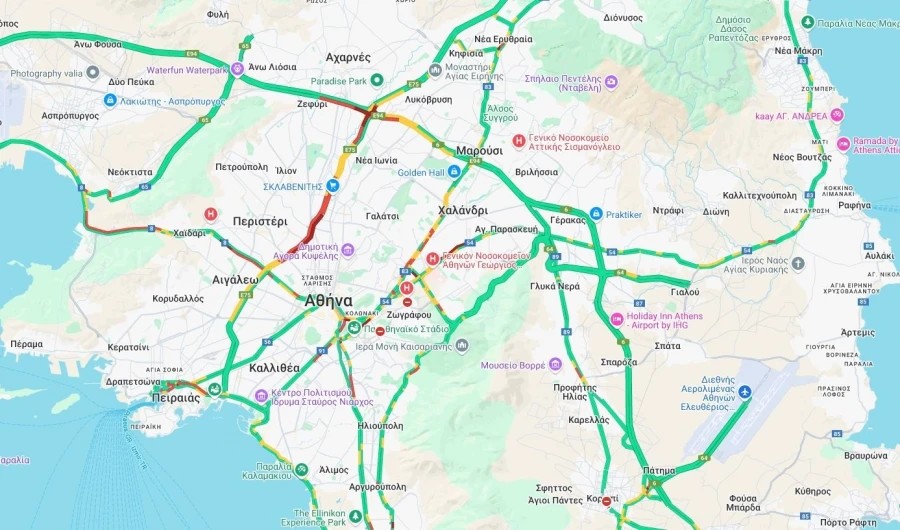 Μποτιλιάρισμα καταγράφεται στη λεωφόρο Κηφισίας καθώς και στη λεωφόρο Παλαιολόγου, αλλά και στην Κατεχάκη.