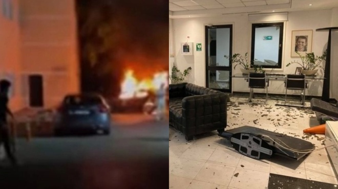 «Φλέγεται η πύλη του συγκροτήματος. Άνθρωποι βρίσκονται μέσα και σπάνε τα αυτοκίνητά μας. Πετάνε πέτρες. Σπάνε παράθυρα, επικρατεί μια κατάσταση…», περιέγραψε ο παρουσιαστής.