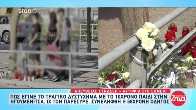 Το αγοράκι παρασύρθηκε από 56χρονη οδηγό, την ώρα που προσπαθούσε να διασχίσει τη διάβαση πεζών για να πάει στο σπίτι του. Η μητέρα του μόλις το είχε αφήσει με το αυτοκίνητο και είδε με τα μάτια της το παιδί της να χάνεται.