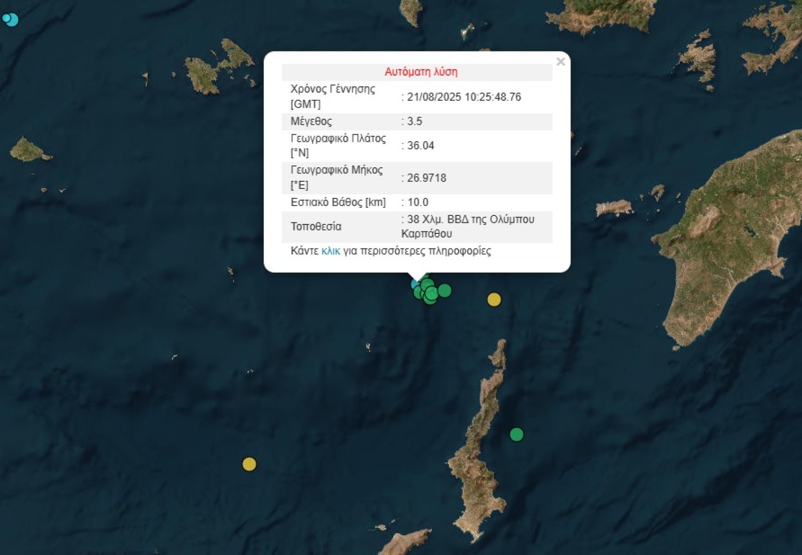 Σεισμός τώρα στην Τήλο, μεγέθους 3,5 βαθμών της κλίμακας Ρίχτερ.