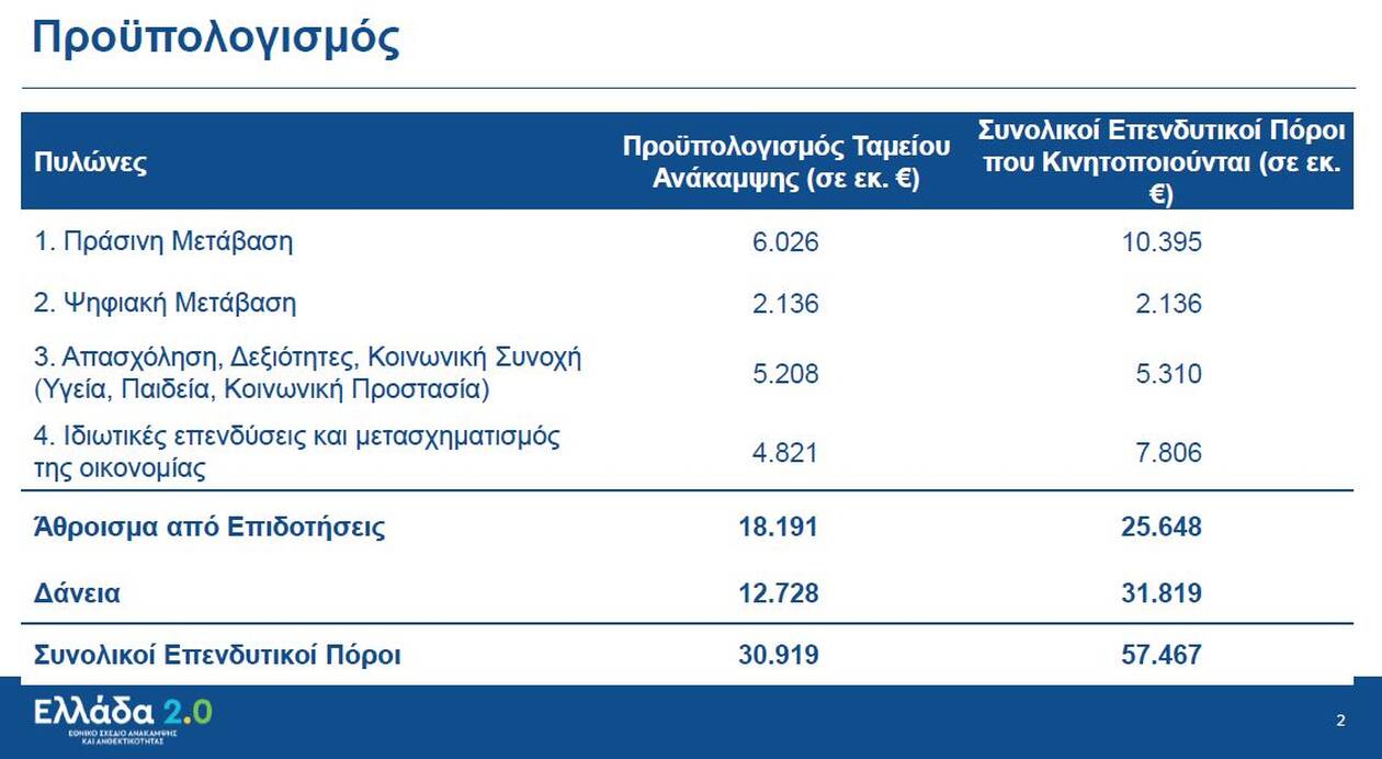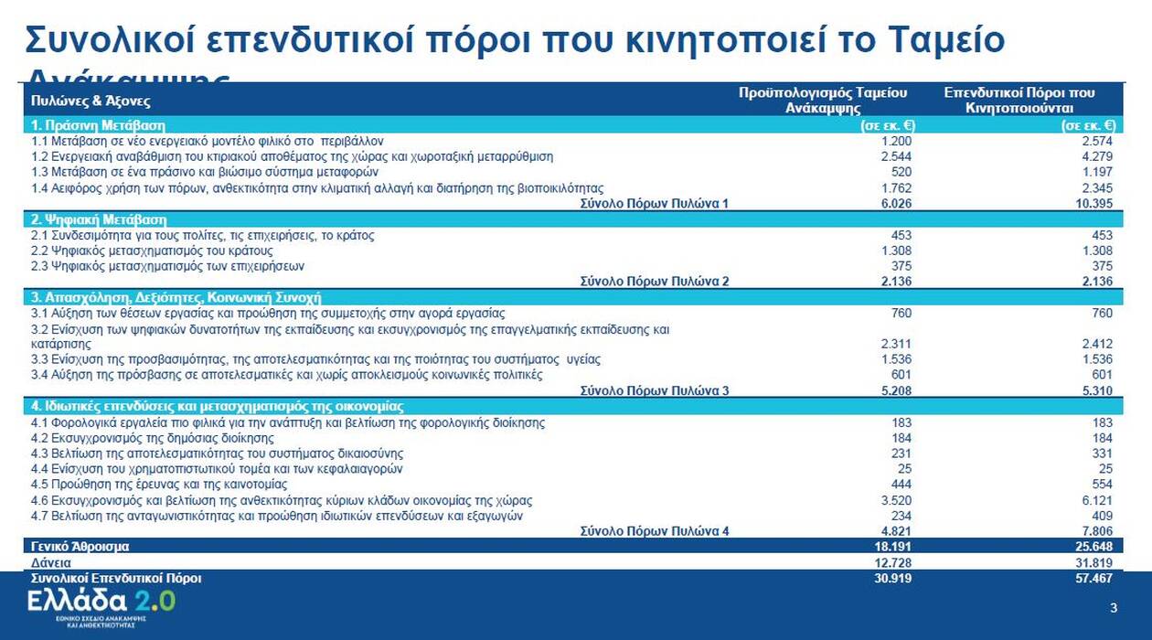 Όπως τόνισε «οι δράσεις του σχεδίου είναι από Έλληνες για Έλληνες, η κυβέρνηση έχει την πλήρη ιδιοκτησία ενσωματώνοντας και πολλά από τα διδάγματα της πανδημίας».