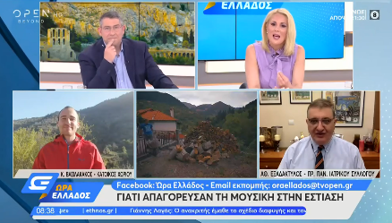 Για τη σκοπιμότητα του μέτρου να ανοίξει η εστίαση χωρίς ωστόσο να υπάρχει μουσική στα μαγαζιά, μίλησε στην «Ωρα Ελλάδος» ο πρόεδρος του Πανελληνίου Ιατρικού Συλλόγου, Αθανάσιος Εξαδάκτυλος. Όπως τόνισε, το συγκεκριμένο μέτρο έχει να κάνει με την ένταση της φωνής και τα σταγονίδια που βγαίνουν από το στόμα με αποτέλεσμα να μεταδίδεται ο κορονοϊός.