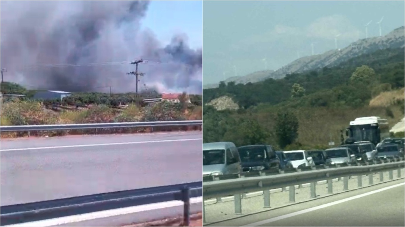 Σύμφωνα με τις πληροφορίες, η φωτιά που εκδηλώθηκε από ελαστικό οχήματος επεκτάθηκε ταχύτατα σε χωράφια παραπλεύρως της Ιόνιας Οδού.