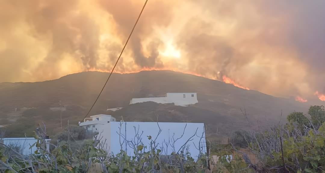 Η φωτιά εκδηλώθηκε στην ευρύτερη περιοχή του Καμαρίου, συγκεκριμένα στη θέση Σκάφη, και οι κάτοικοι έχουν λάβει μήνυμα από την Πολιτική Προστασία μέσω του 112, που τους προτρέπει να απομακρυνθούν από την περιοχή και να κατευθυνθούν προς τον λιμάνι Φούρνους. Επίσης, έχει διακοπεί η ηλεκτροδότηση στην περιοχή.